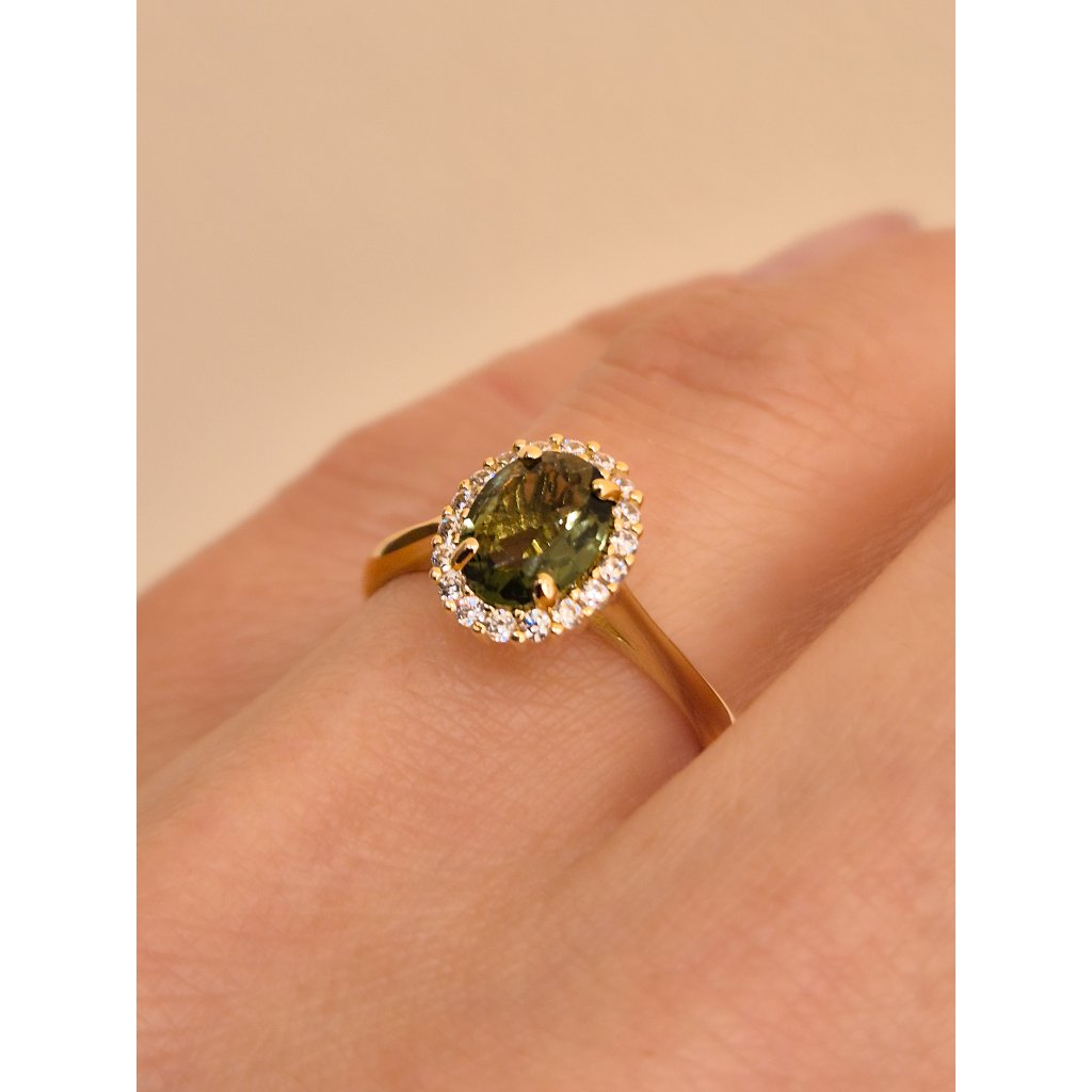 Zlatý prsten s vltavínem a zirkony ovál P22 0049