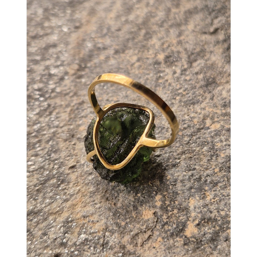 Vltavín ve své původní podobě září v kontrastu se zlatem. Každý kus je originální, stejně jako Vy.