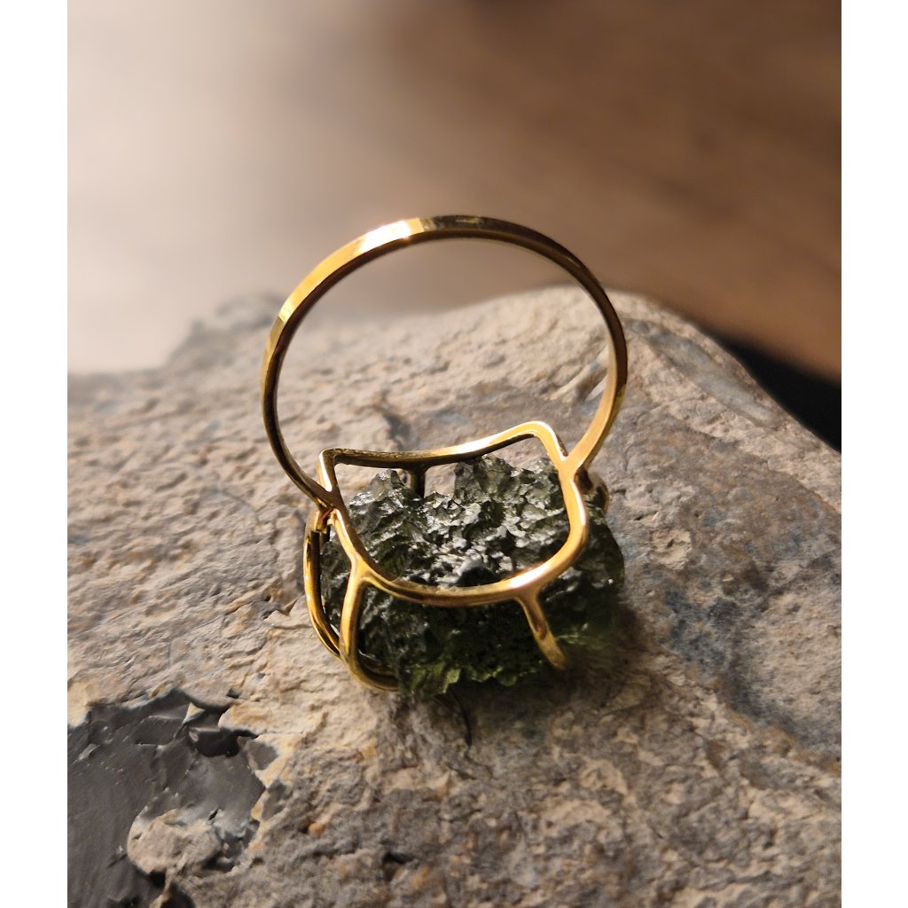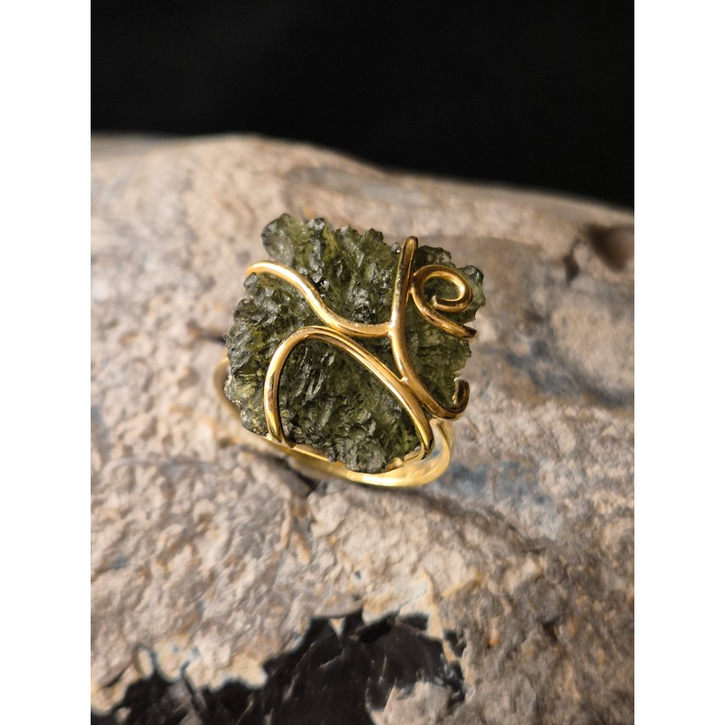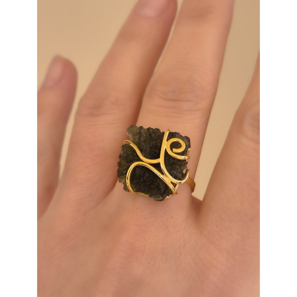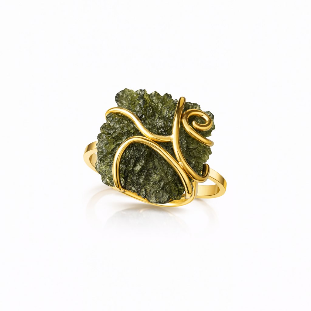 Tento luxusní prsten s vltavínem je skvostem českého zlatnictví. Nadčasový šperk, který svou elegancí podtrhne váš jedinečný styl.