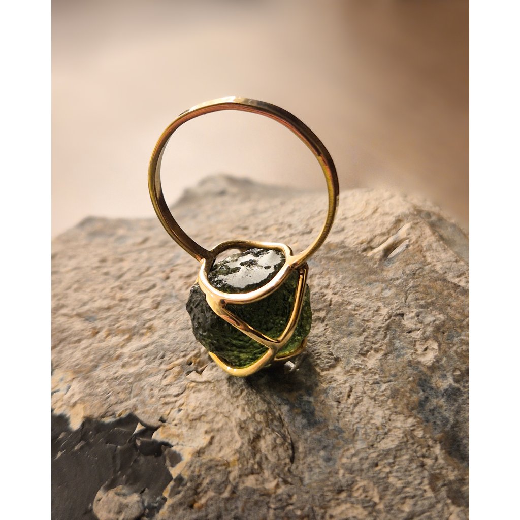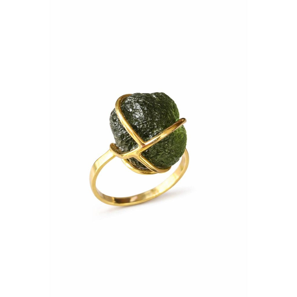 Chcete šperk s příběhem? Zlatý prsten s vltavínem nese kouzlo vesmíru.
