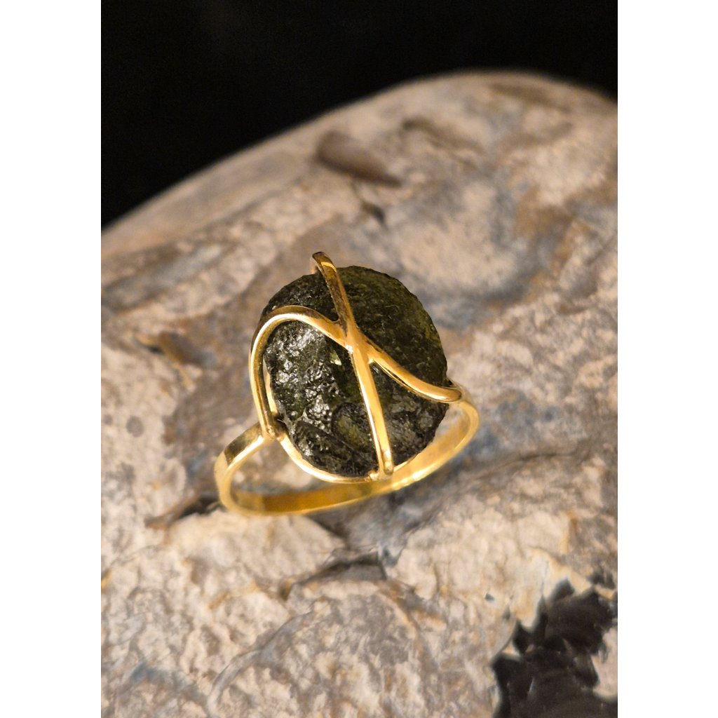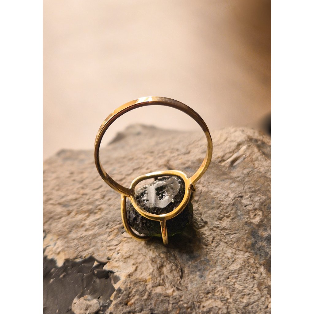 Nadčasová elegance – zlatý prstens vltavínem spojuje v sobě luxus, české řemeslo a přírodní kouzlo.