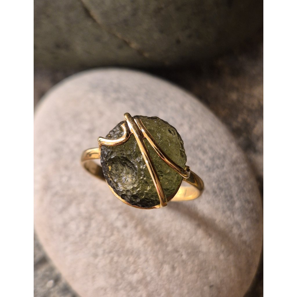 Zlatý prsten s vltavínem P27 0022