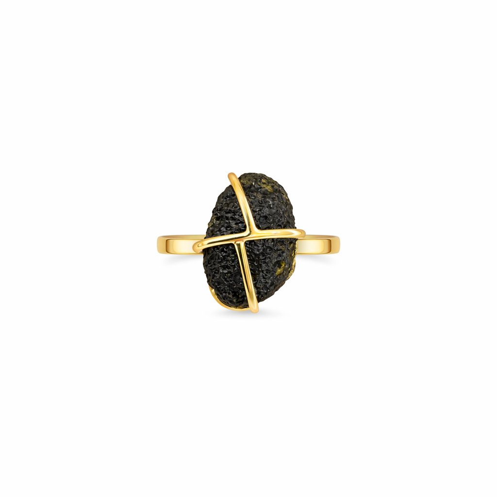 Tento zlatý prsten s neopracovaným vltavínem je výrazem originality a silné osobnosti. Každý kus má svůj vlastní příběh, který se stane součástí toho Vašeho.