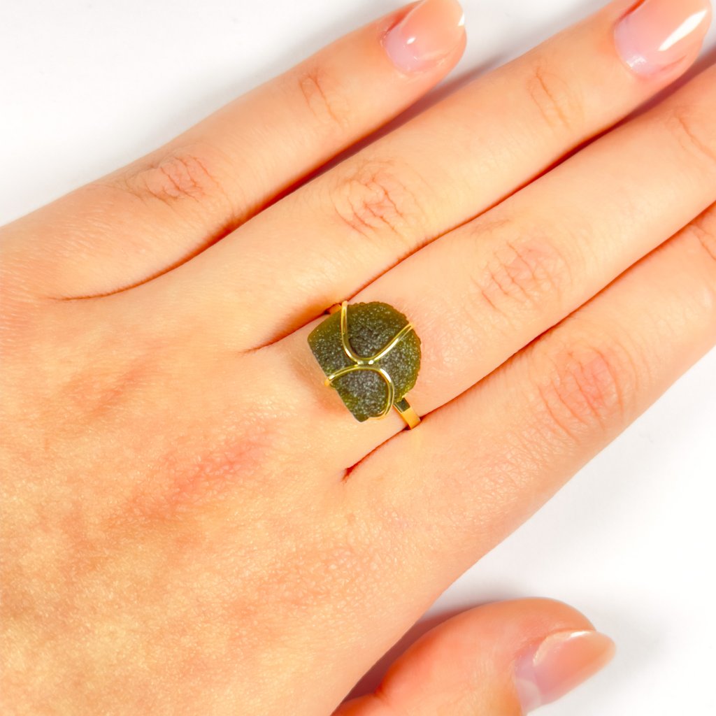 Zlatý prsten s vltavínem P27 0032