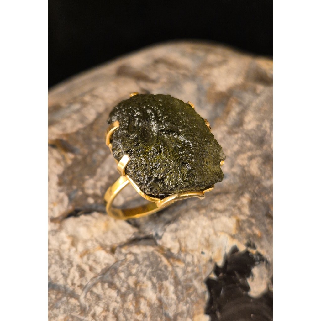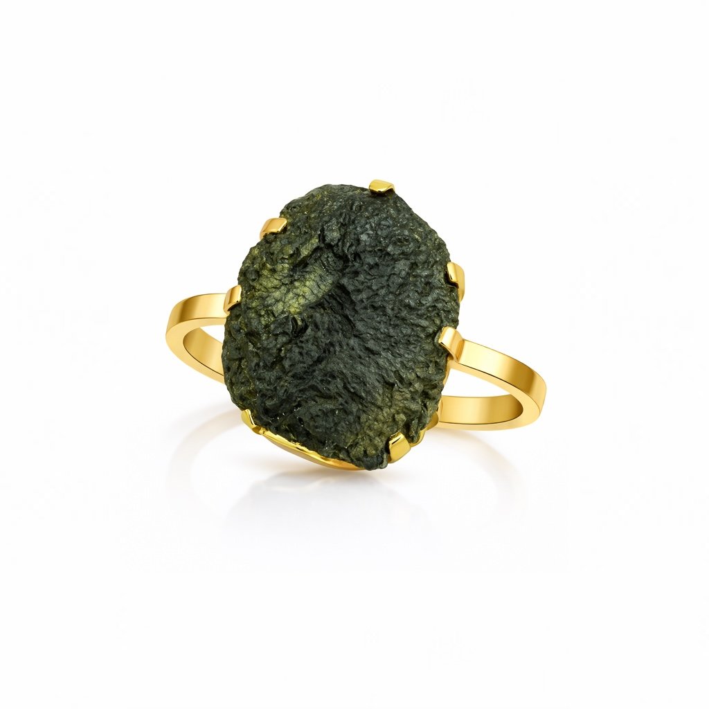 Sofistikovaný minimalistický prsten s vltavínem kombinuje luxusní materiály a nadčasový design. Vyrobeny českými řemeslníky pro ženy s vytříbeným vkusem.